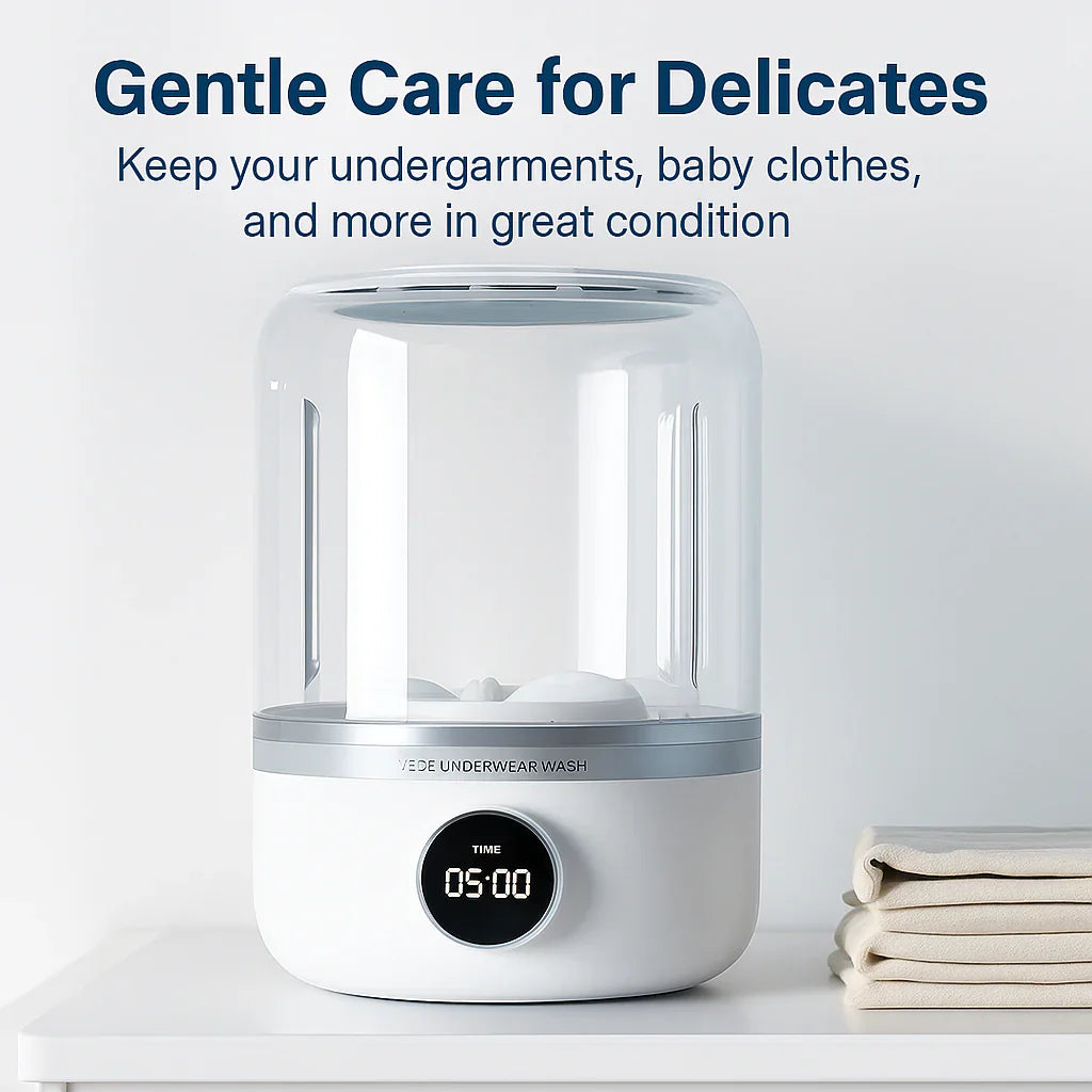 With it, underwear, socks and other small items can be washed automatically. Just fill it with water, press the button and leave the rest.